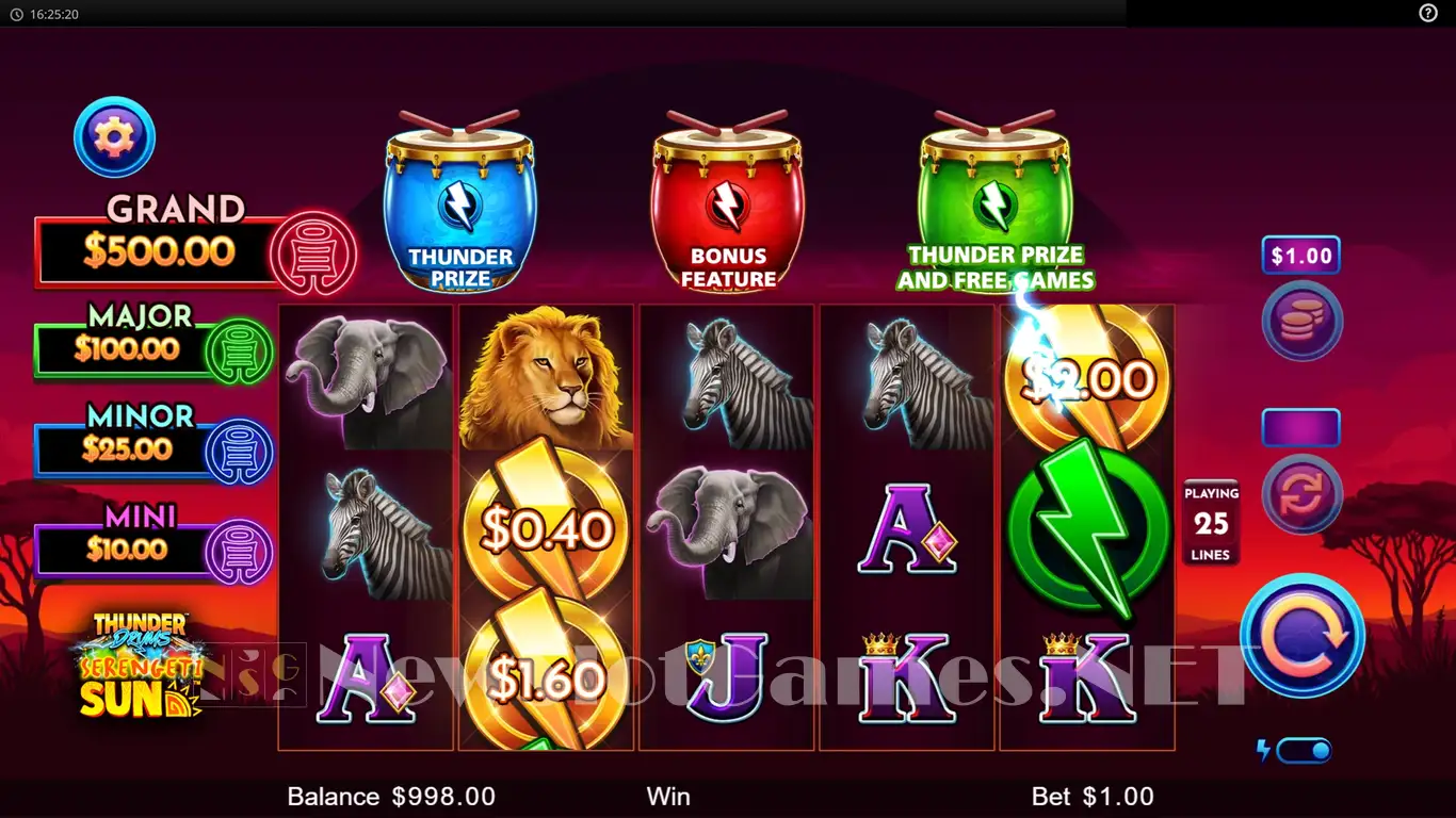 Yes! NewSlotGames offers the latest version of the Thunder Drums Serengeti Sun demo game directly from Light & Wonder servers.