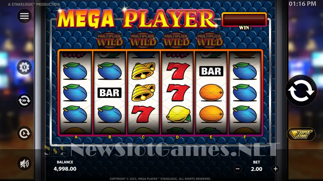 Yes! NewSlotGames offers the latest version of the Mega Player demo game directly from Stakelogic servers.