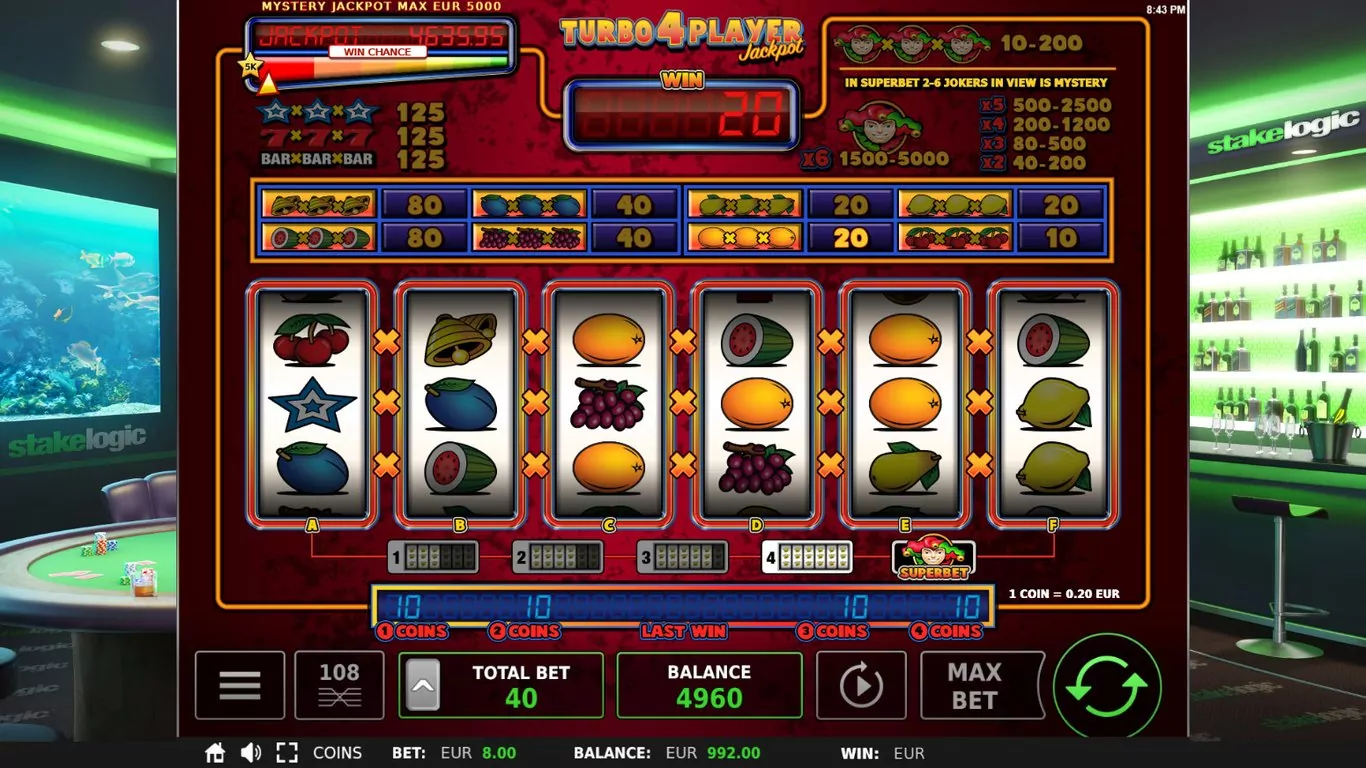 If you’re into classic slot machines, then Turbo4Player is sure to get your attention, as a slot machine that tries to bring this category into the modern age. It uses more reels and lines than you might be used to, but the symbols are the same classic ones that you know and love. The developer that launched this daring new casino game is Stakelogic.