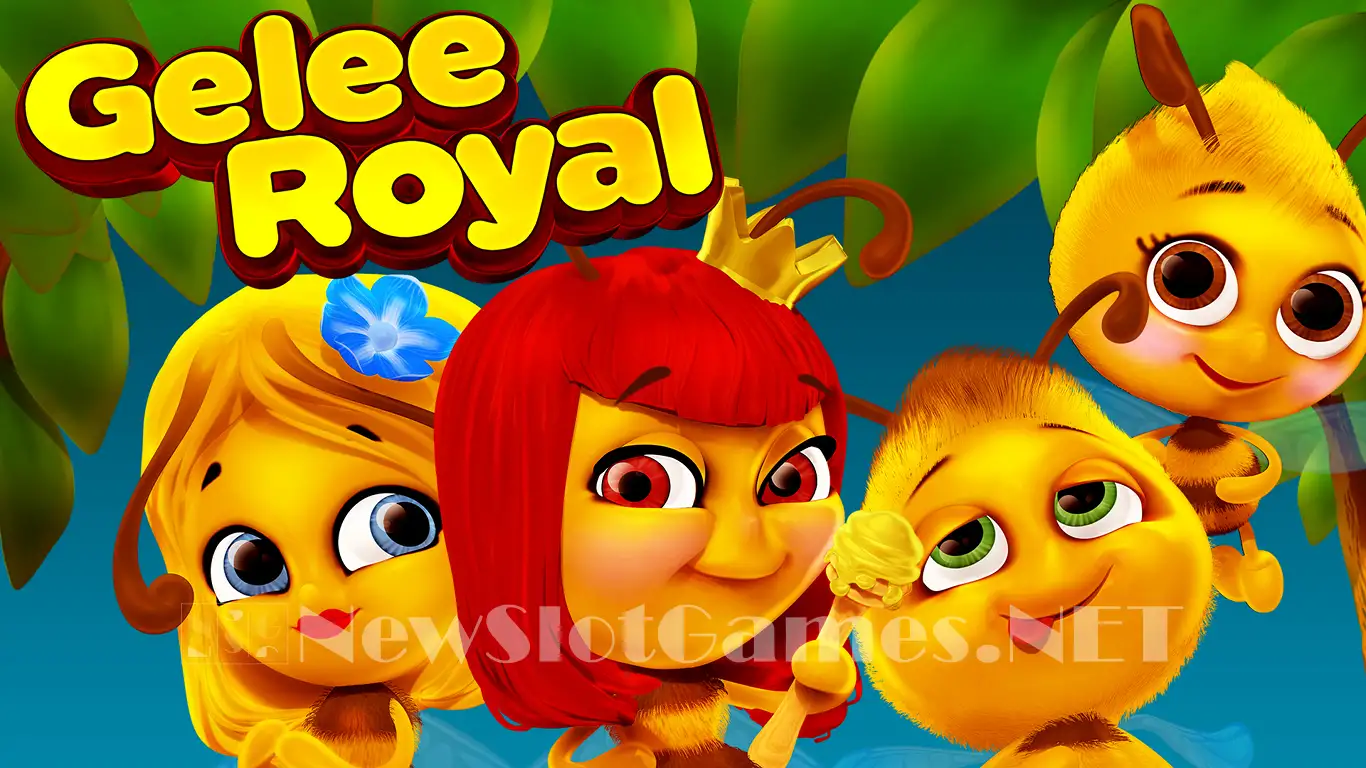 Gelee Royal is a very cute, bee-themed slot machine. You’re looking at a family of bees on its reels, all of them cartoonish and yellow. Among the symbols that you will notice, there are the Beekeeper’s Hat, a Beehive, the Queen Bee, Regular Bee, and two Bee Babies. Two symbols with flowers come next, and then we see five Royals (going 10 to A).