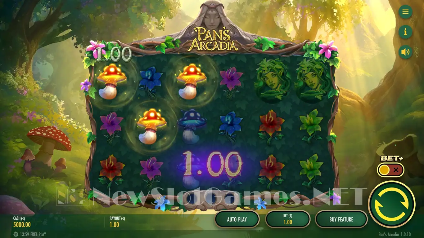 Pan is the god of wild, shepherds, flocks, rustic music, and fertility, and the images show it as a creature that has the torso of a man, but the legs, horns, and tail are those of a goat. It’s cuter on the reels of this slot than in other representations I’ve seen of this creature. Thunderkick knows how to deliver good graphics, though, and I really enjoyed the nature connection that we find inside. Besides Pan, there are images of Pandora, a couple of nymphs, mushrooms, and various flowers.