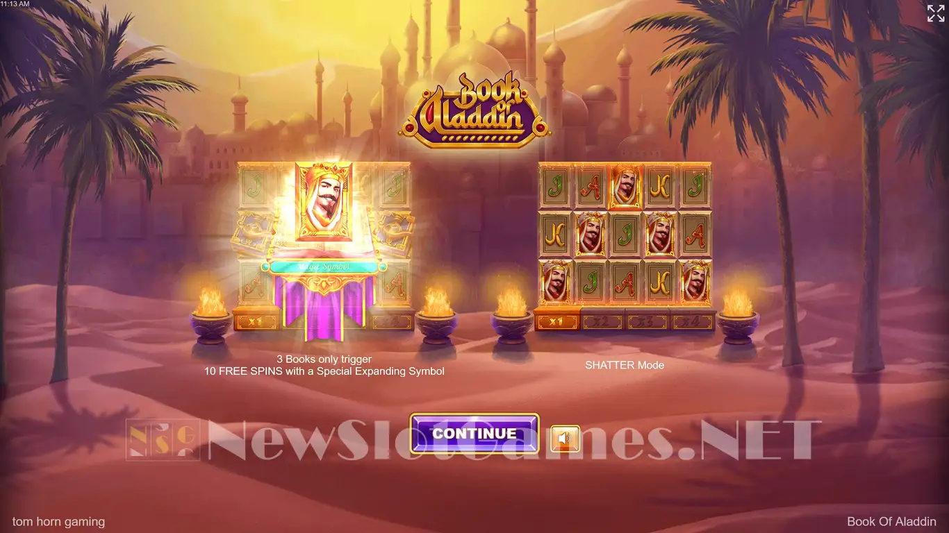 Yes! NewSlotGames offers the latest version of the Book of Aladdin demo game directly from Tom Horn servers.