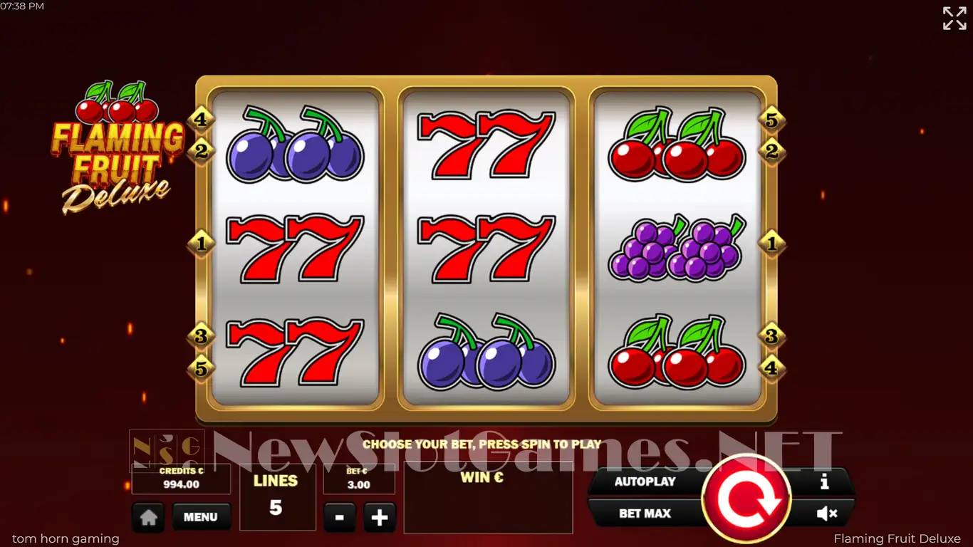 Yes! NewSlotGames offers the latest version of the Flaming Fruit Deluxe demo game directly from Tom Horn servers.