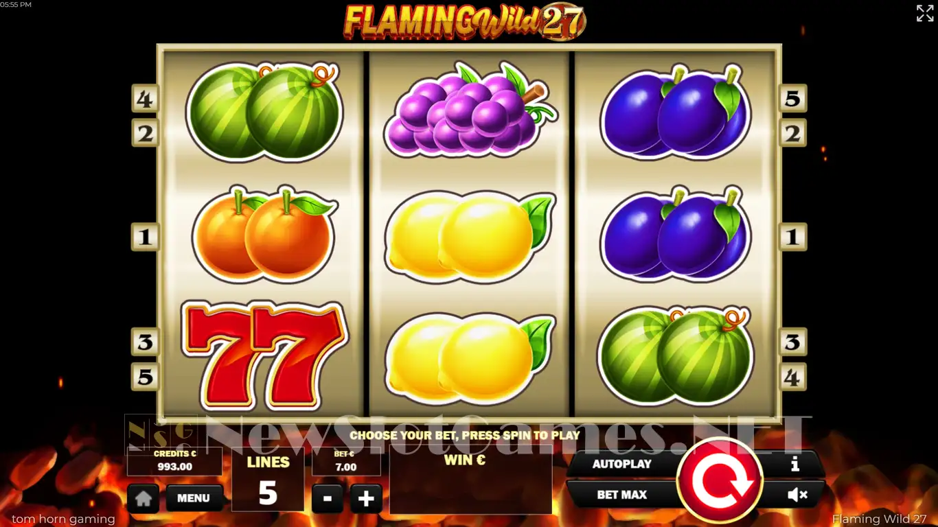 Yes! NewSlotGames offers the latest version of the Flaming Wild 27 demo game directly from Tom Horn servers.