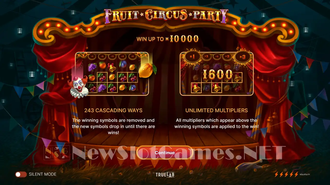 Yes! NewSlotGames offers the latest version of the Fruit Circus Party demo game directly from True Lab servers.