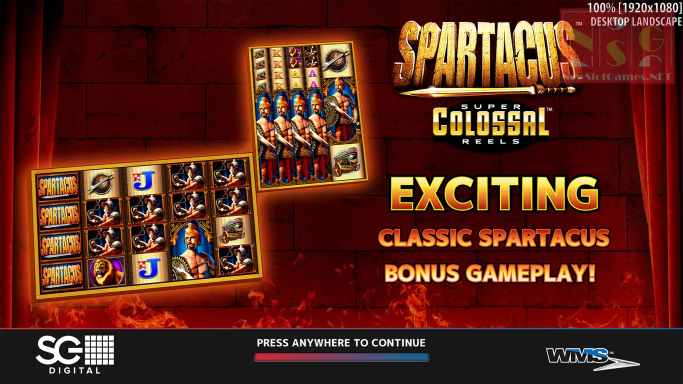 Yes! NewSlotGames offers the latest version of the Spartacus Super Colossal Reels demo game directly from WMS servers.
