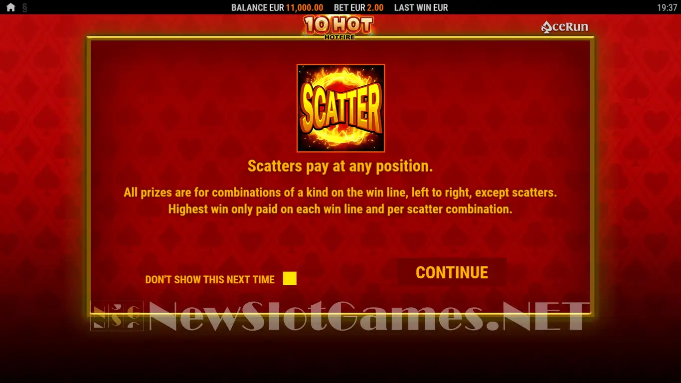 10 Hot HOTFIRE keeps things simple, extremely so, actually. You will not find any big features in this one, just a dated design and a single scatter symbol. It’s not used to trigger any free spins or bonus games as you might see elsewhere. Instead, having 3, 4, or 5 of those Scatter logos somewhere in view will bring you a prize worth 2x, 10x, or 50x the stake. That’s it. The game focuses on forming regular combinations, going left to right on the 10 paylines provided.