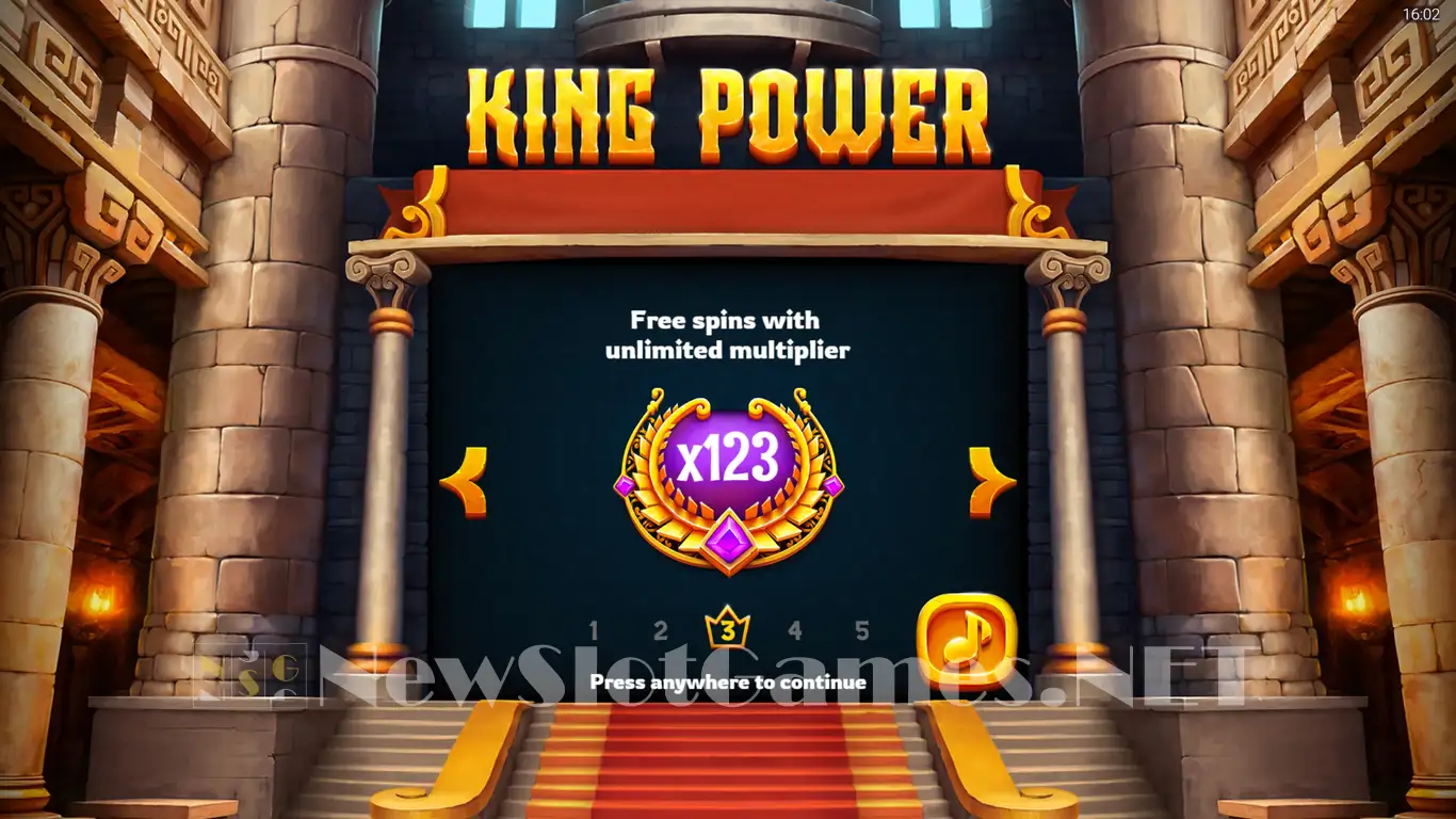 With 4+ scatters, you get 7+ rounds in the Super Free Spins feature. You can claim more rounds through the King Reel, and you can give bigger boosts to the multiplier via special powerups.