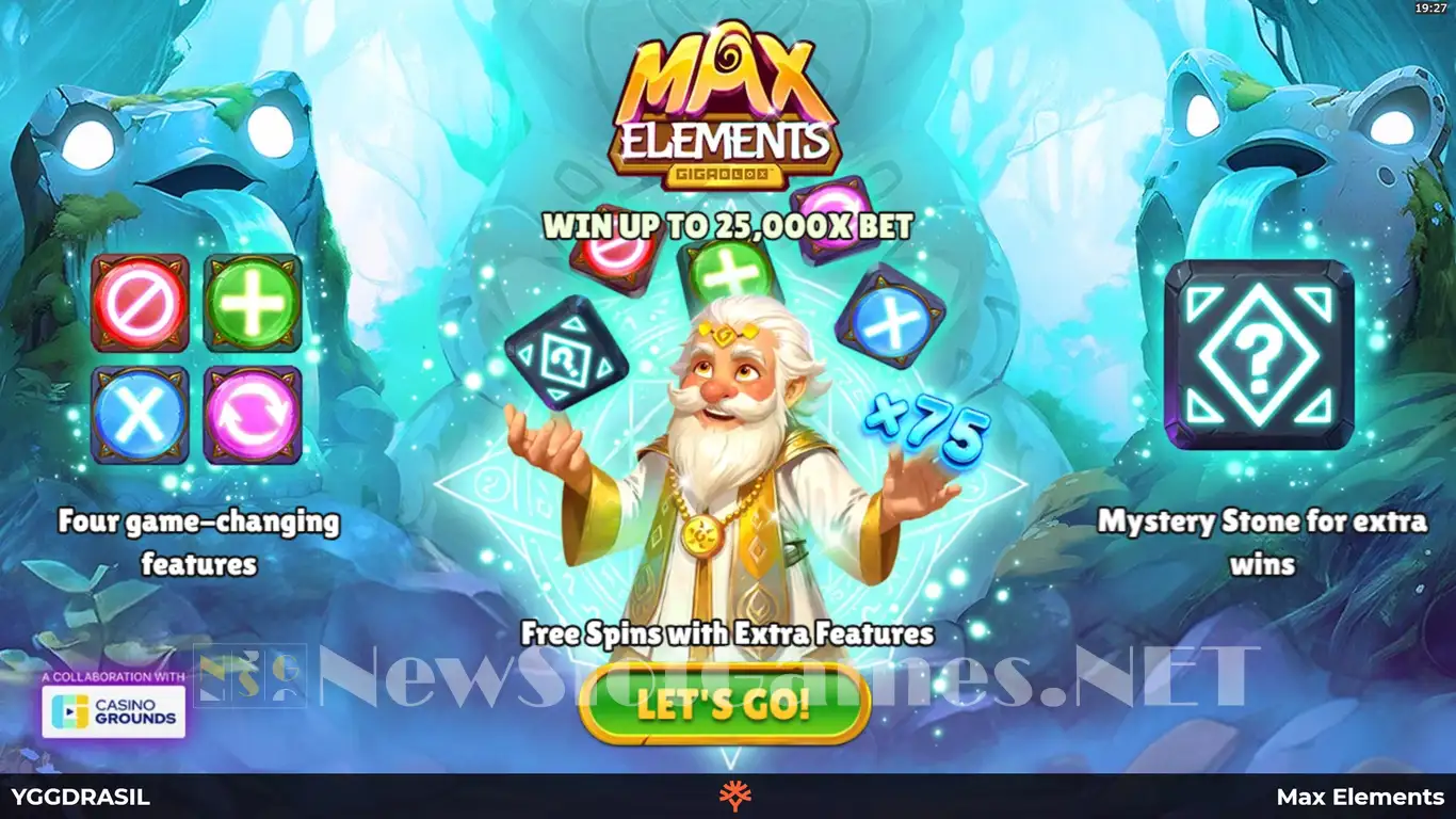 Max Elements belongs to the fantasy genre, featuring a wizard in the lead role and the various elements as its major symbols and influence on its design. This is one of the new slots available via Yggdrasil Gaming.