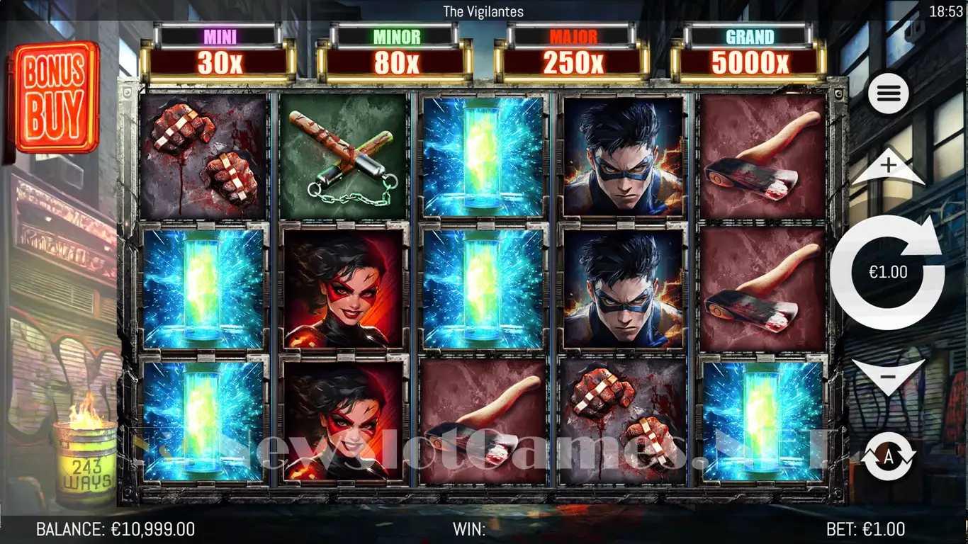 The action of this slot machine takes the player to a large city, the kind of place that sometimes needs a little bit of unofficial justice. The symbols you will see on the reels will deliver images of various weapons, including knuckle dusters, baseball bats, axes, or nunchucks. The rest tend to feature the various Vigilante characters.